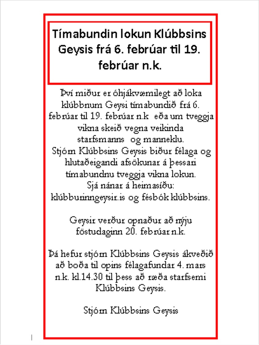 Klúbburinn Geysir er vottað klúbbhús af Clubhouse International