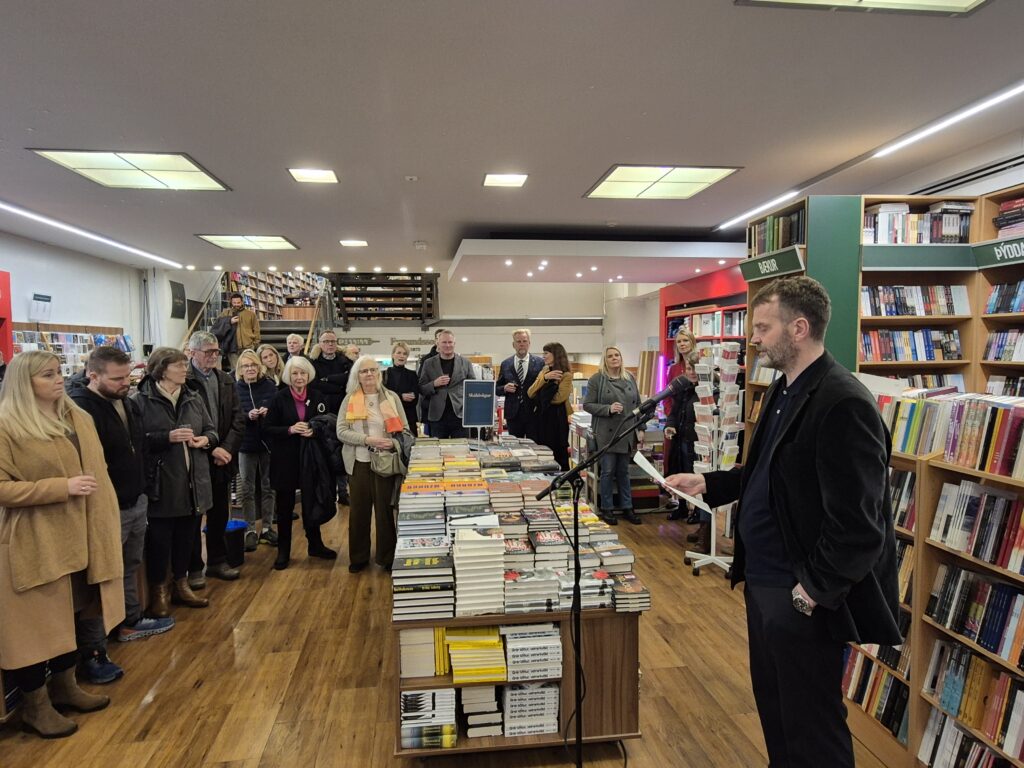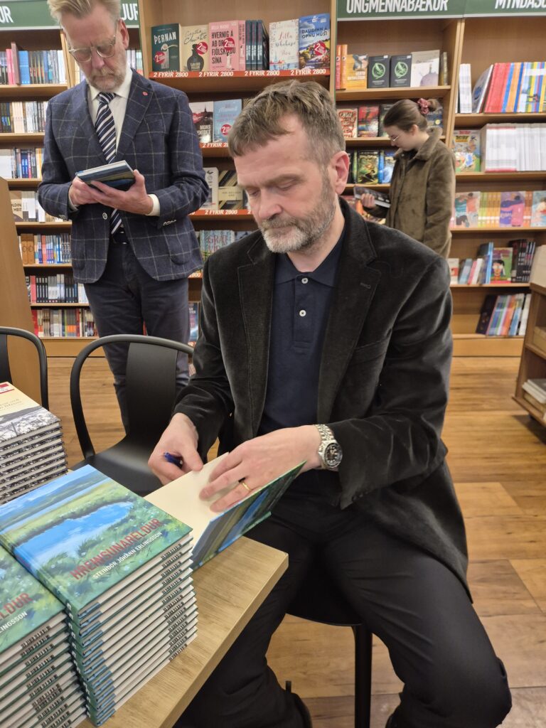 Útgáfuteiti Steindórs J. Erlingssonar var í versluninni Penninn Eymundsson í Austurstræti síðastliðinn fimmtudag. Steindór er að gefa út ljóðabók sína Hreinsunareldur. Tveir aðrir höfundar voru með kynningu á bókum- Sigmundur Ernir Rúnarsson og Sigurlín Bjarney Gísladóttir. Vel mætt og góð stemning. – Höfundar lásu úr bókum sínum og árituðu fyrir þá sem vildu.